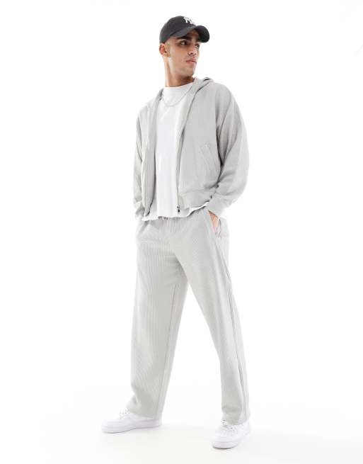 Bershka - Lysegrå joggingbukser i bæk-og-bølge-stof - Del af sæt