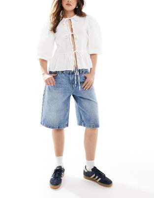 Bershka - Mellemblå baggy denimshorts