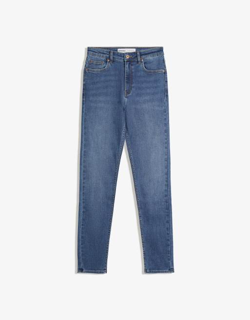 Bershka - Mellemblå bløde skinny-jeans med superhøj talje