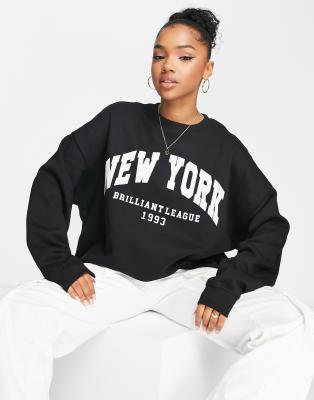 Bershka - Oversized - Sort sweatshirt med grafisk tekstprint
