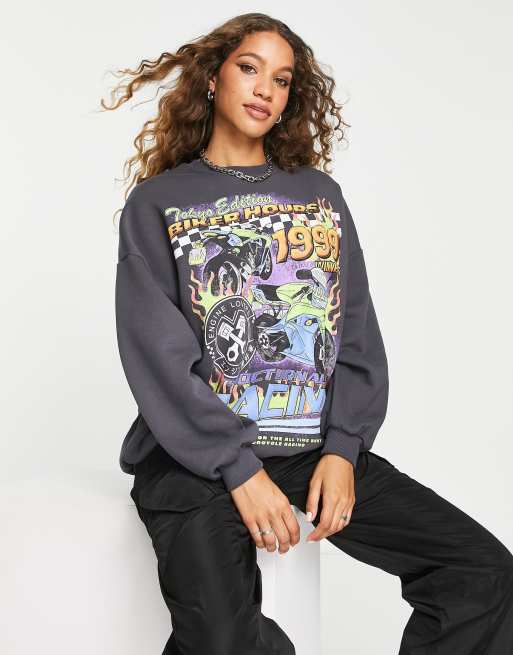 Bershka - Oversized sweatshirt med racerlogo i sort