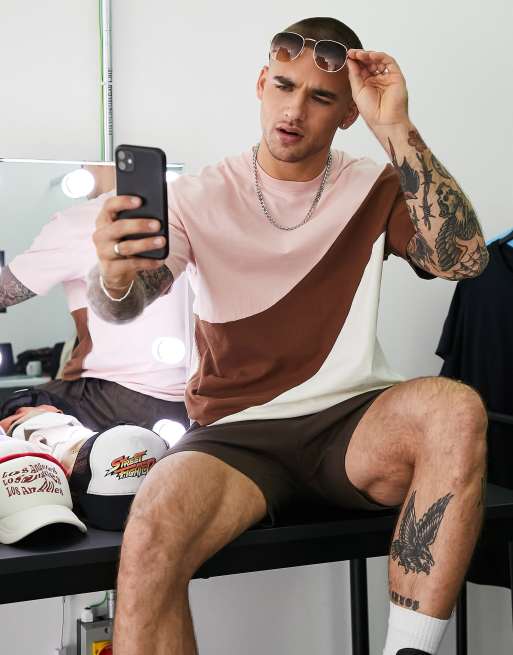 Bershka - Oversized T-shirt med splejset multifarvet design