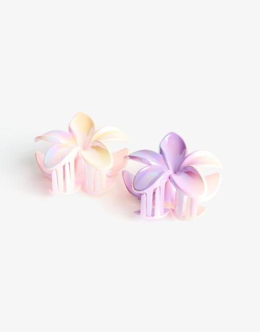 Bershka - Pakke med 2 lyslilla hårklemmer med blomsterdesign