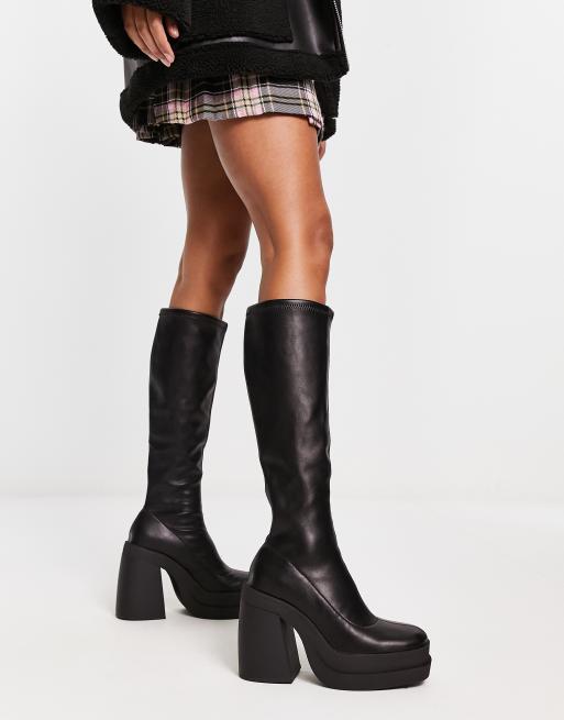Bershka - Plateau-ankelstøvler med hæl i sort pu