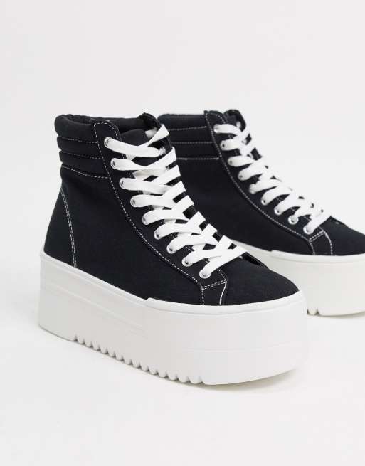 Bershka - Platform-sneakers med snørebånd i sort