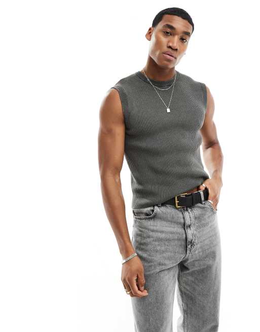 Bershka - Ribstrikket top i vasket grå