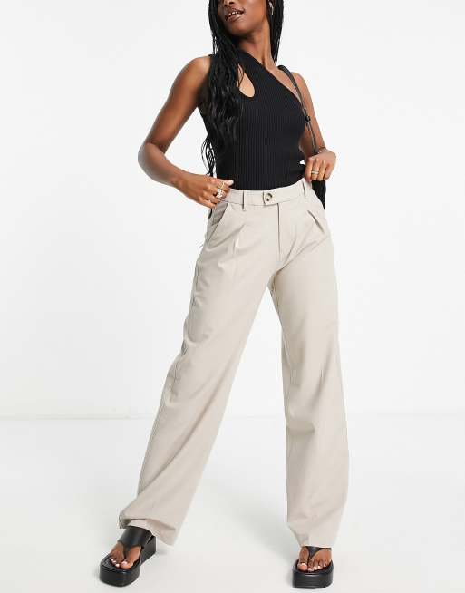Bershka - Sandfarvede hørbukser med lige ben