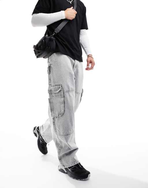 Bershka - Skaterjeans med cargolommer i vasket grå