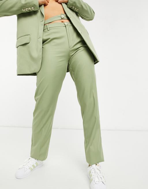 Bershka - Skræddersyede bukser med dobbelttalje i olivengrøn - Del af sæt