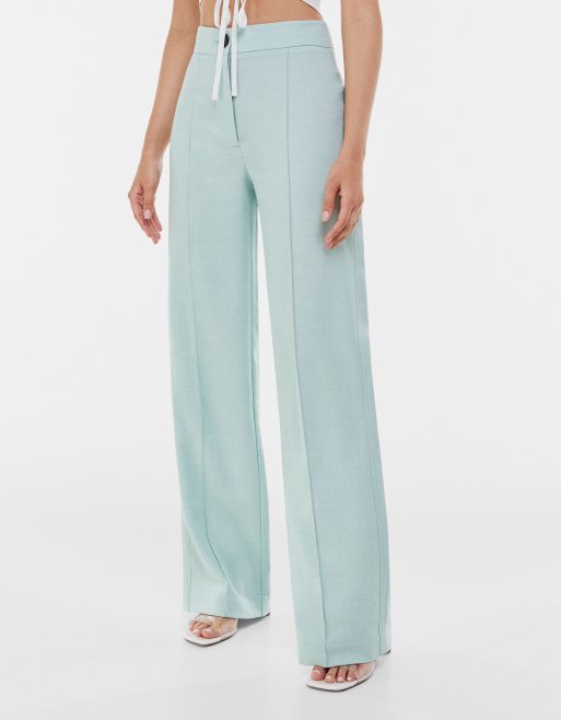 Bershka - Skræddersyede bukser med vide ben i blå