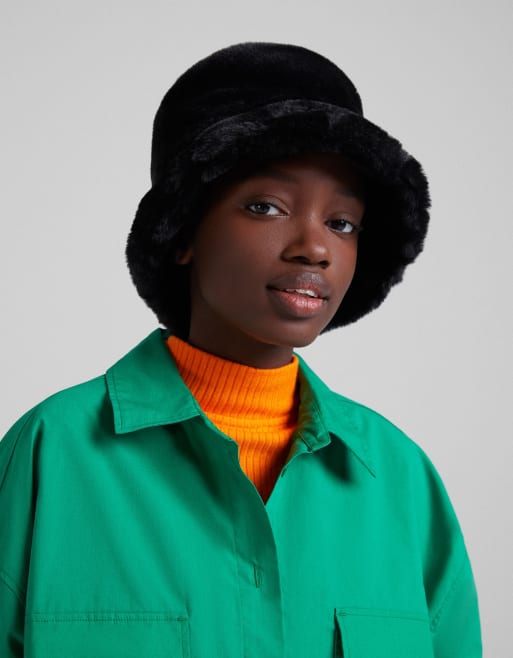 Bershka - Sort bøllehat i chunky, imiteret pels