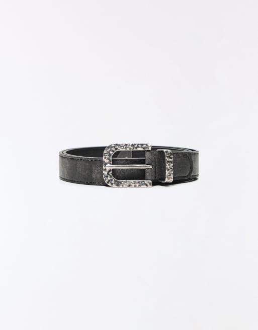 Bershka - Sort bælte med hamret spænde
