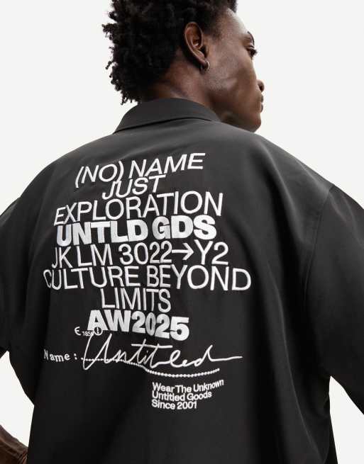 Bershka - Sort skræddersyet skjorte med broderi i firkantet pasform