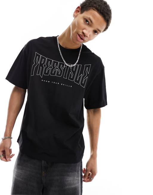 Bershka - Sort T-shirt med 'Freestyle'-print