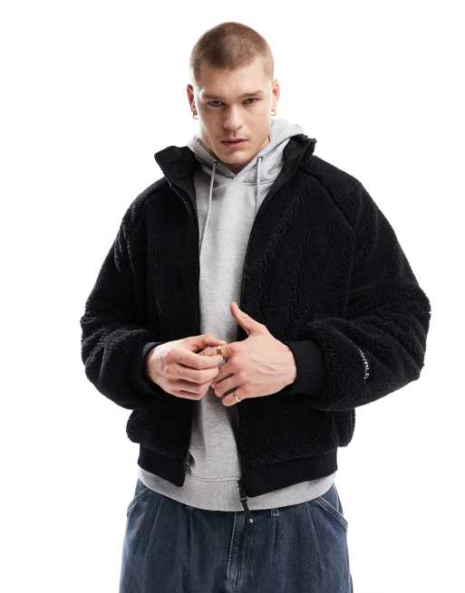 Bershka - Sort vendbar jakke i imiteret lammeskind