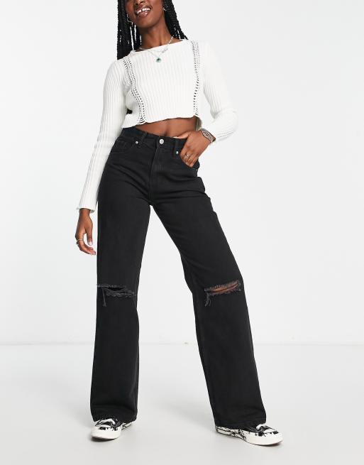 Bershka - Sorte 90'er-jeans med vide ben og flænger