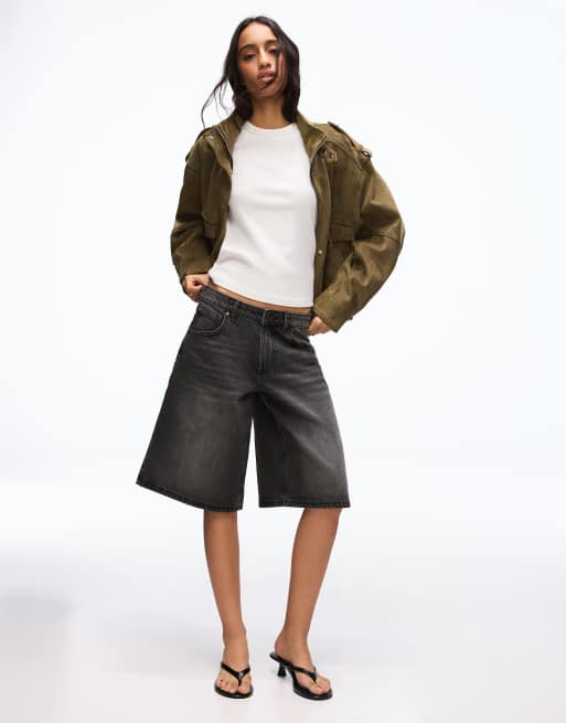 Bershka - Sorte baggy bermuda-jorts i denim