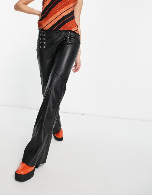 Bershka - Sorte bukser med svaj og snører i imiteret læder