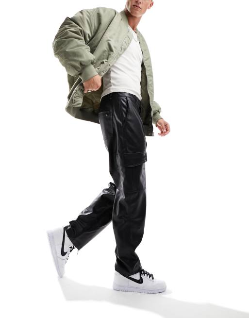 Bershka - Sorte cargo-bukser i imiteret læder - Kun hos ASOS