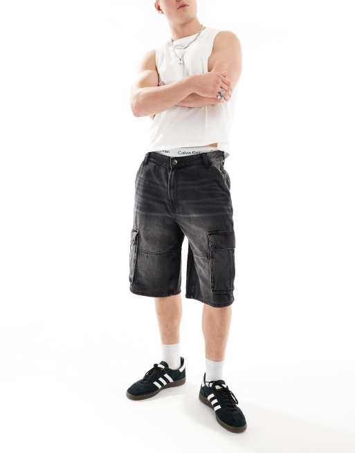 Bershka - Sorte cargoshorts i denim