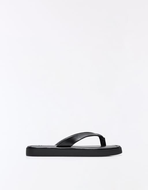 Bershka - Sorte flade slider-sandaler med tårem