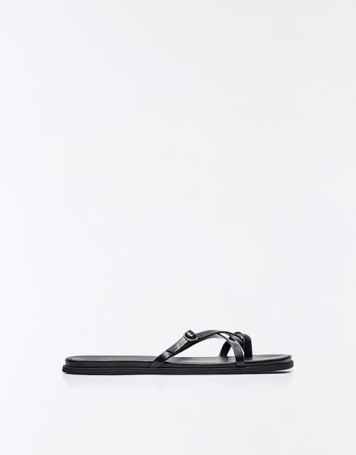 Bershka - Sorte flade slidersandaler med flere remme