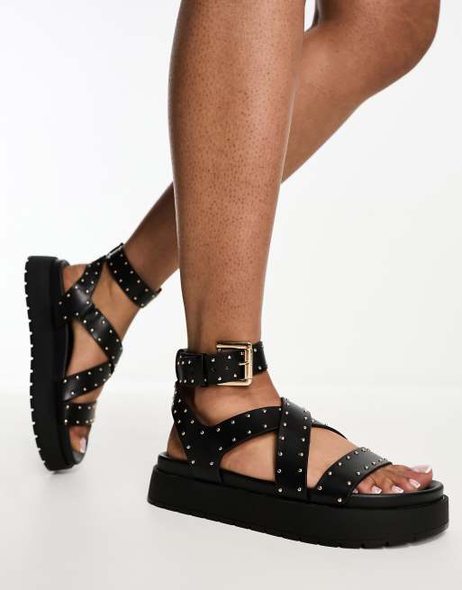 Bershka - Sorte flatform-sandaler med nitter