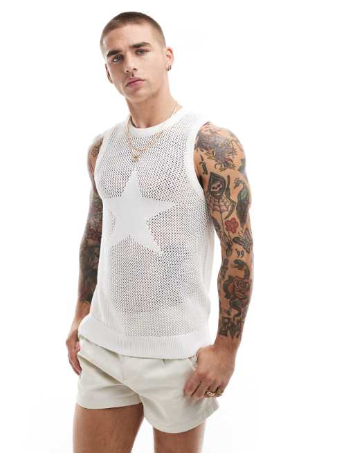 Bershka - Strikket top med stjernemotiv i hvid