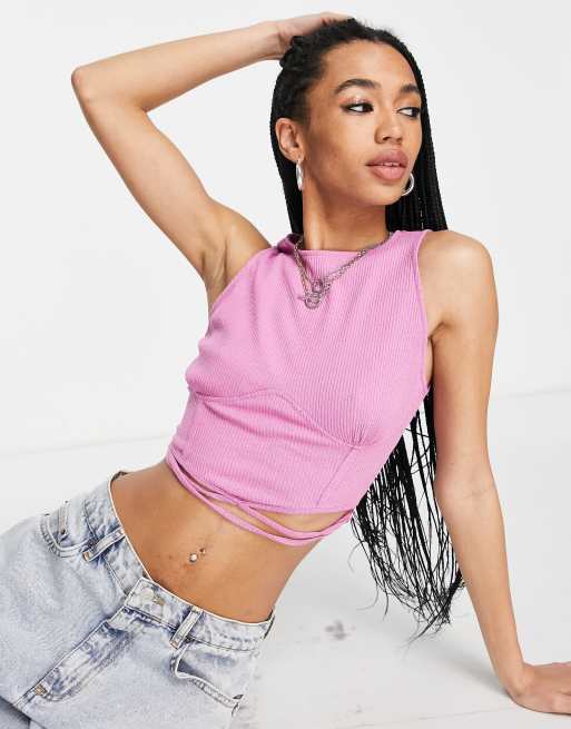 Bershka - Syrenfarvet croptop med slå-om-detalje og syning over brystet
