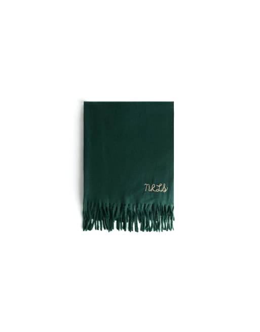 Bershka - Unisex, broderet og grønt tørklæde