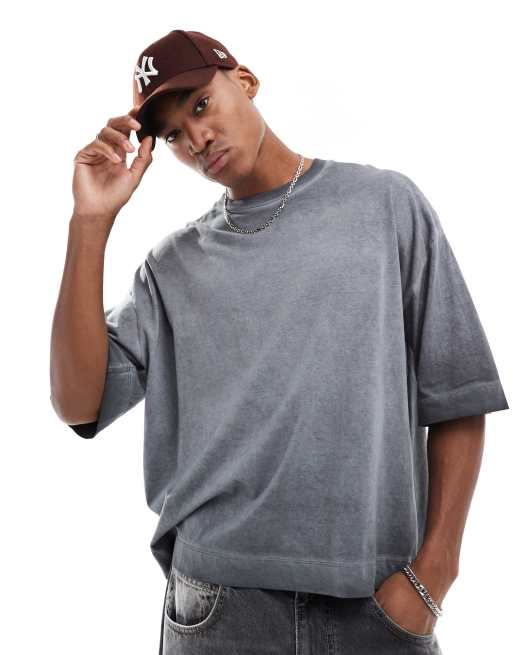 Bershka - Vasket koksgrå T-shirt i firkantet pasform
