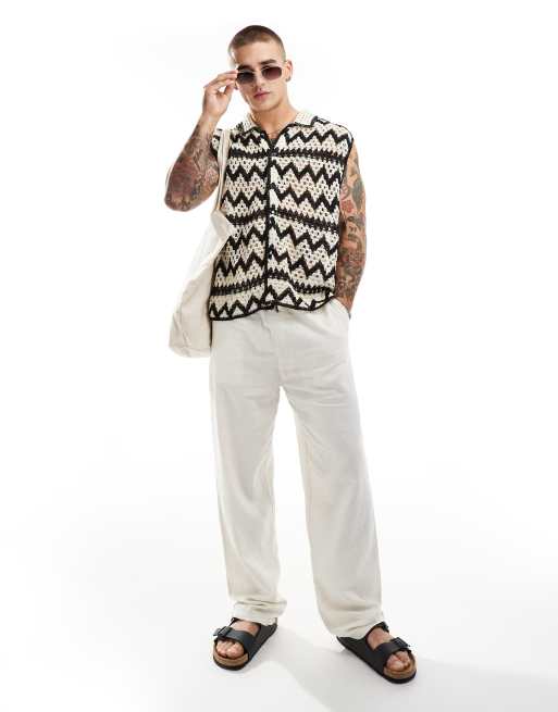 Bershka - Vesttop i hæklet mønster i ecru