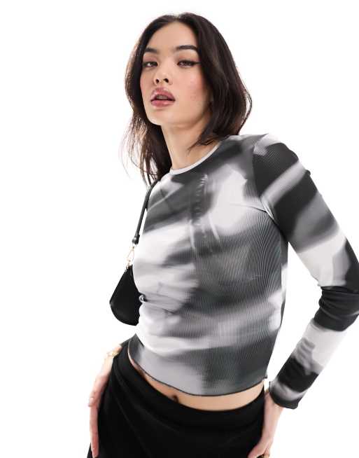 Berska - Grå langærmet top med byprint i mesh