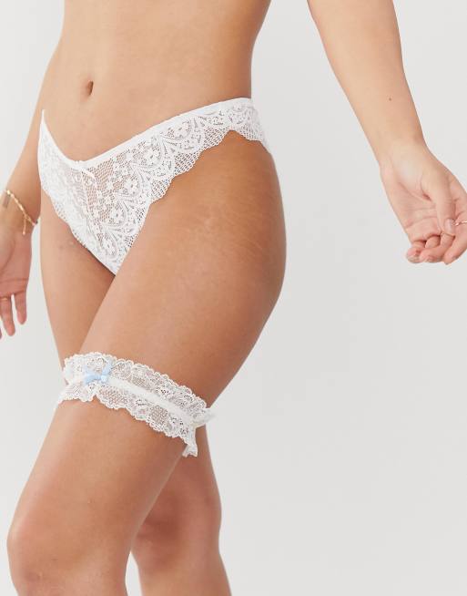 Brude strømpebånd i hvid og blå fra Bluebella