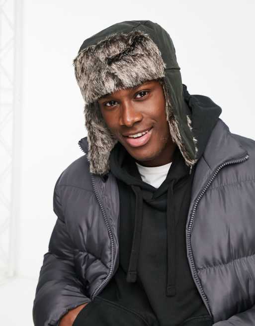 Boardmans - Voksbelagt jægerhat med imiteret pels i khaki