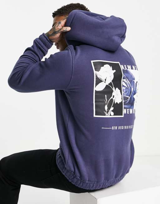 Bolongaro Trevor - Blå hættetrøje med print på ryggen