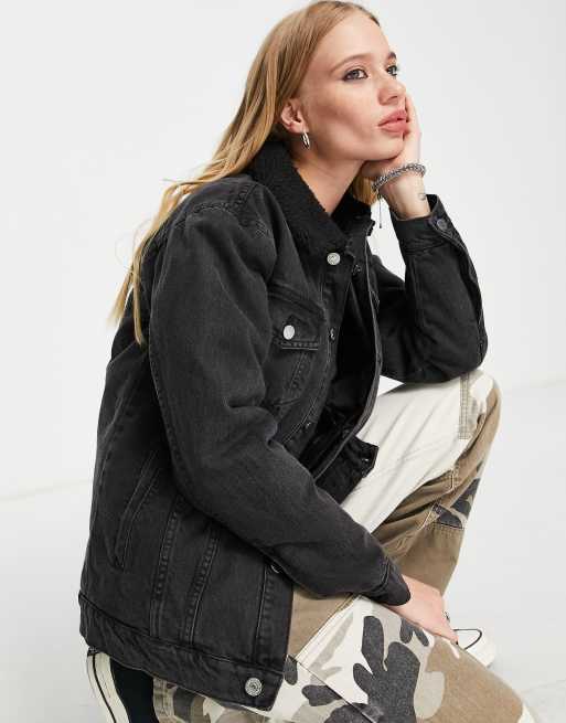 Bolongaro Trevor - Razzi - Denimjakke i forvasket sort med kant i imiteret lammeskind
