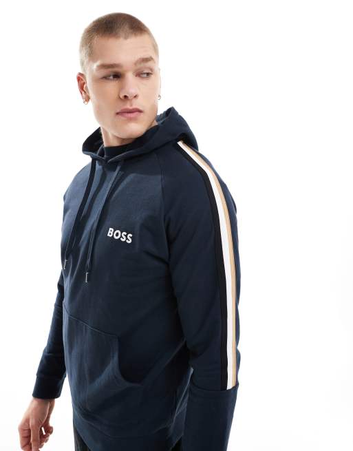 BOSS Bodywear - Marineblå pullover-hættetrøje med logo