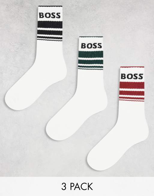 BOSS Bodywear - Pakke med 3 par logosokker i hvid med sportsstriber