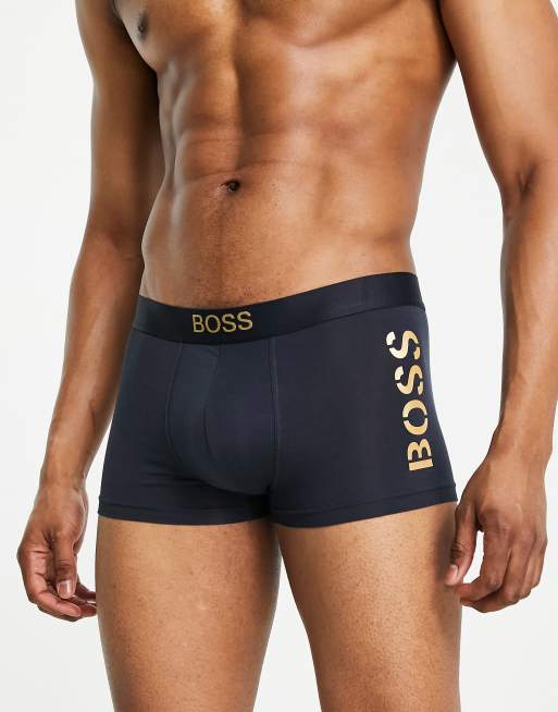 Boss Bodywear - Starlight - Marineblå boksershorts med guldfarvet logo