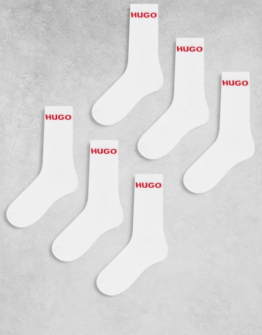 HUGO Bodywear - Pakke med 6 par hvide sokker med logo i ribstrik