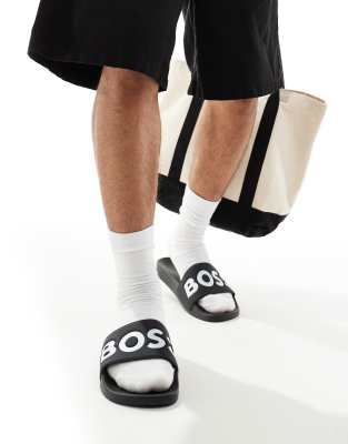 BOSS - Aryeh - Sorte sliders til poolen med hvidt logo