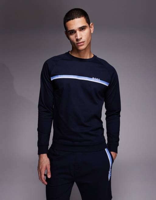 BOSS Bodywear - Marineblå lounge-sweatshirt med autentisk logo og enkelte striber