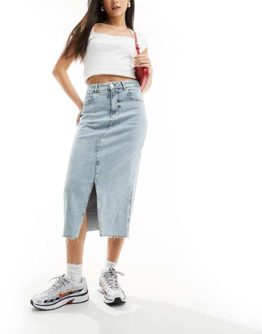 BOSS - Midinederdel i denim og lys vask