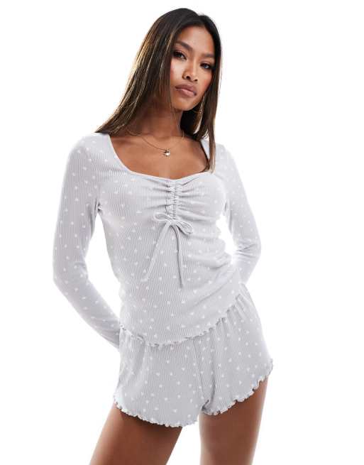 Boux Avenue - Gråt pyjamassæt med lange ærmer og hjerteprint