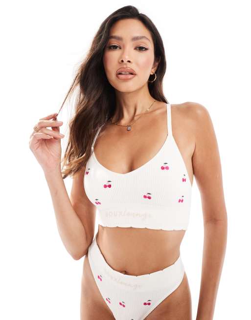 Boux Avenue - Hvid bralette med broderede kirsebær