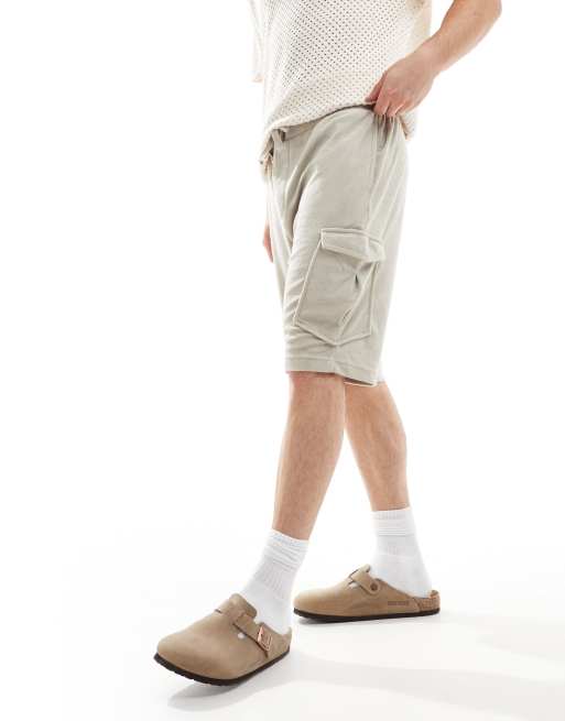 Brave Soul - Beige cargoshorts i frotté - Del af sæt