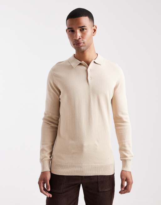 Brave Soul - Beige langærmet strikket polo