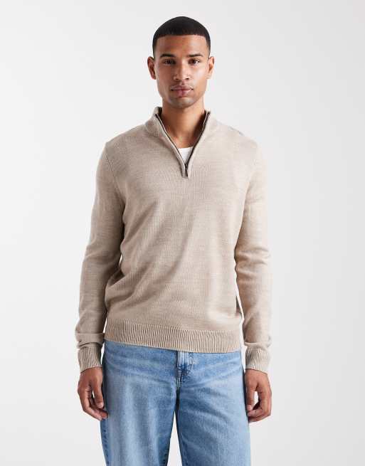 Brave Soul - Beige strikket trøje med kvart lynlås