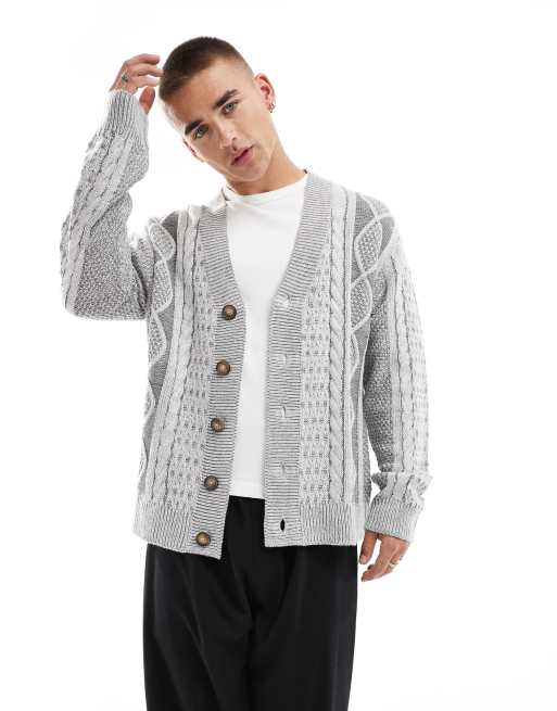 Brave Soul - Lysegrå og kabelstrikket cardigan
